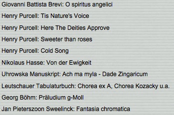 Werke von Sweelinck, Purcell, Brevi, Hasse, Böhm sowie barocke Zigeunerlieder
